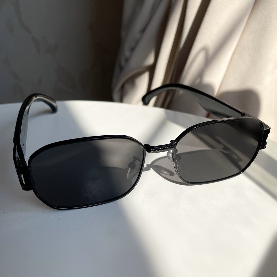 اندازه عینک مناسب صورت های متوسط و کوچک یووی ۴۰۰ / عدسی استاندارد پد ضد حساسیت و قابل تنظیم دسته و لولای فلزی دسته کار شده برجسته حک برند روی شیشه